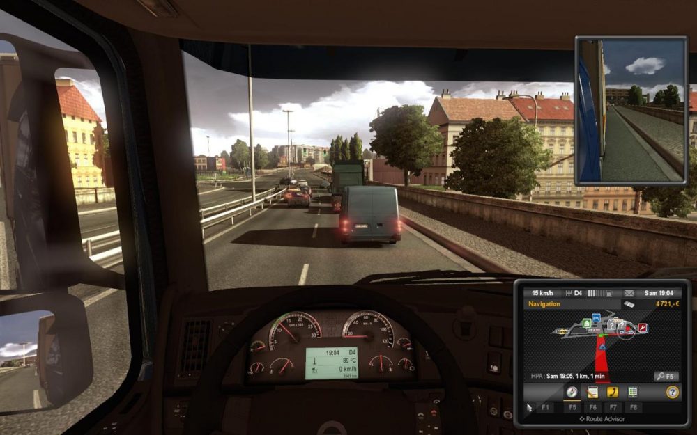 Vous l’avez compris, le but du jeu est simple mais efficace, car le jeu est très complet. Alors attention, ce n’est pas une copie conforme de la réalité : les distances sont raccourcies et il n’y a qu’une soixantaine de villes présentes (d’Édimbourg à Poznań, ce qui est déjà pas mal). Les villes d’ailleurs ne sont pas présentes en entier, généralement seules les zones commerciales sont présentes. Mais un effort a été fait par le développeur pour que l’on reconnaisse quand même le lieu. Par exemple, à Lyon, j’ai vu au loin la Tour du Crédit Lyonnais. Vous aurez donc besoin d’un certain temps pour découvrir toutes les villes et rouler sur toutes les routes proposées.