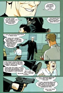 Sous des atours de simple et court comic, entre thriller et espionnage un peu violent, se cache un véritable petit pamphlet politique, oscillant entre nihilisme et anarchie, dénonçant un système qui privilégie l’arrivisme sur la compétence et qui a tendance à oublier les pires heures de son Histoire cachée, faite d’assassinats, de coups d’état et autres vérités enterrées. En opposant la bureaucratie au travail de terrain, en démontrant qu’un monstre sans moralité peut se créer, on parvient à une tératologie de ce que peut engendrer le pouvoir. Le poids de la Mort touche tout le monde, et Elephant Man nous l’a prouvé, les monstres sont mal perçus mais  restent des humains. Déranger un monstre qui essayent d’oublier qu’il en est un, se révèle très mauvais pour la santé. La preuve.